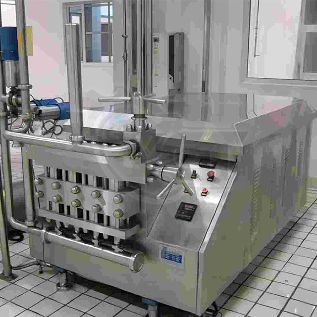 Proceso: garantizar que cada producto tenga los mismos datos de proteína, contenido de grasa, sabor, etc. Mediante un sistema de mezcla estándar y luego mediante un homogeneizador, los glóbulos de grasa de la leche se descomponen en partículas más pequeñas bajo alta presión para mejorar la uniformidad y la estabilidad del producto. Este proceso normalmente ocurre a temperaturas entre 55°C y 65°C.
