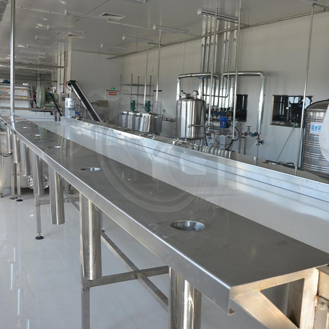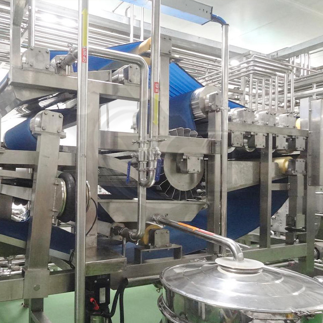 La línea de producción de piña puede producir jugo claro, jugo turbio, jugo concentrado, piña enlatada y mermelada. La línea de producción de piña se compone principalmente de una lavadora con burbujas de fruta, un elevador, una máquina clasificadora de frutas, una lavadora con cepillo, una máquina cortadora y peladora de piña, una trituradora de piña con martillo, una prensa de banda para extracción de jugo, un separador de disco, ultrafiltración (para el procesamiento de jugo de piña transparente), equipo de concentración y máquina de esterilización. y máquina llenadora. La línea de producción de piña se combina con un alto grado de automatización, configuración superior, diagrama de flujo tecnológico científicamente razonable y estándares de higiene de calidad alimentaria.